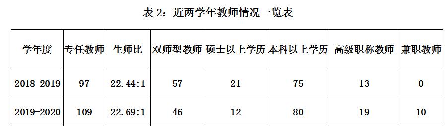 學校辦學一直堅持“辦學以市場為中心,學校以學生為中心,隊伍以教師為中心、教學以能力為中心,工作以績效為中心”的辦學方針,以培養(yǎng)學生職業(yè)核心能力為重點、職業(yè)專業(yè)能力為基礎(chǔ)和全程育人為支撐的思想,構(gòu)建學生綜合素質(zhì)能力體系,使每一名學生具有良好的職業(yè)素質(zhì)和能力”的辦學特色。多年來建設(shè)了一支高素質(zhì)的師資隊伍,教職員工176人,專兼職教師109人;生師比為23:1,本科學歷80人,研究生學歷12人;雙師型教師46人、占教師總數(shù)的48.4%,中、高級職稱以上教師33人。