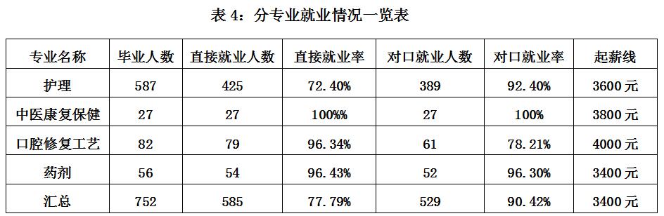 我校采取冠名班定向培養(yǎng)、“現(xiàn)代學徒制”、實習帶薪擇優(yōu)就業(yè)、入校選拔直接就業(yè)等模式,畢業(yè)生進入哈醫(yī)大一二三四醫(yī)院、北京歡樂口腔醫(yī)院、上海茂菊口腔醫(yī)院、珠海新茂義齒公司、深圳坤立義齒公司、珍寶島藥業(yè)、北京亞東藥業(yè)有限公司等全國著名醫(yī)藥和義齒加工機構(gòu)。2020年新增校企合作企業(yè)28家,優(yōu)質(zhì)合作企業(yè)數(shù)量逐年加大,近三年學生就業(yè)率、起薪值均高于同類中職學校畢業(yè)生。2019-2020畢業(yè)生直接就業(yè)率為77.8%、升學率22.2%,對口就業(yè)率為90.42%,畢業(yè)生本省就業(yè)率為82.56%,初次就業(yè)起薪為3400元以上,升學人數(shù)167人,其中本科19人,高職???48人。在疫情大環(huán)境下與2019年就業(yè)率持平,對口就業(yè)率增漲12.42%,畢業(yè)生本省就業(yè)率增漲2.68%,升學率增漲2.4%。